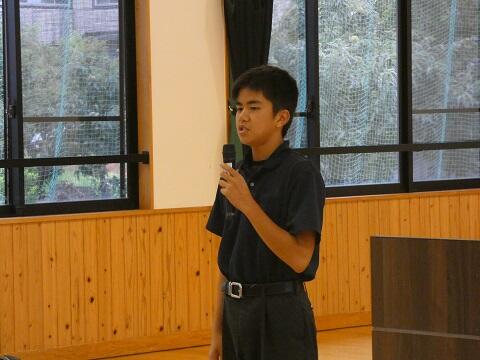 <旧役員の方1人1人から話がありました。とても立派で1,2年生も気が引き締まったと思います。>