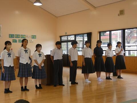 次に激励式の様子をお伝えします。北川中学校は野球、女子バレー部、バドミントン部の3つの運動部があります。各部活から中体連への意気込みを発表してもらいました。
