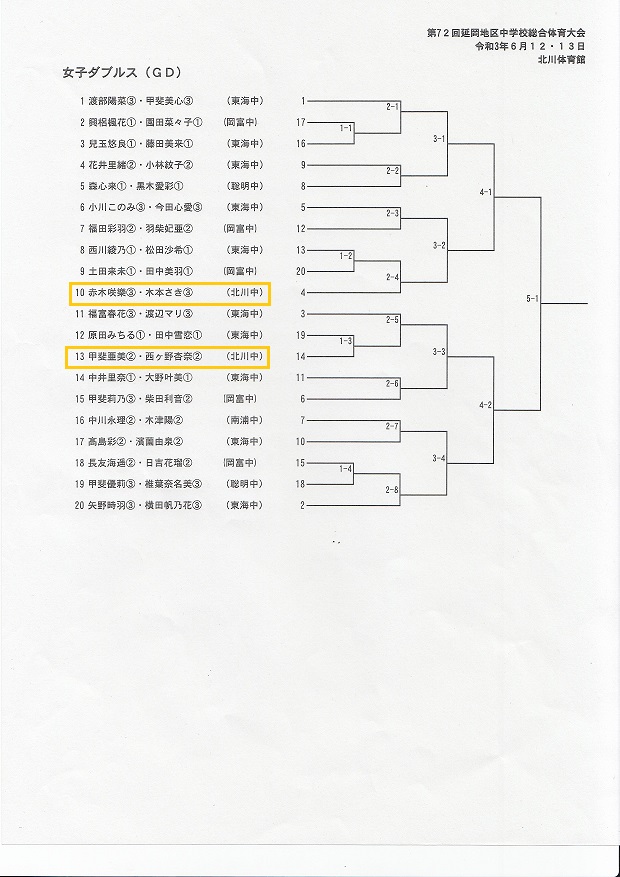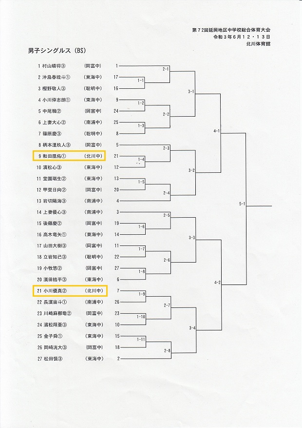 北川中学校からは1年生2名が県大会に出場します。