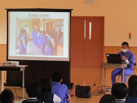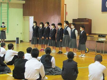帰りの会の前に、武道場で生徒集会と全校集会がありました。