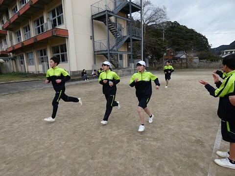 12月に行われた持久走記録会の結果が発表されました。学年男女1位の表彰と毎時間授業に参加した生徒に完走賞が授与されました。