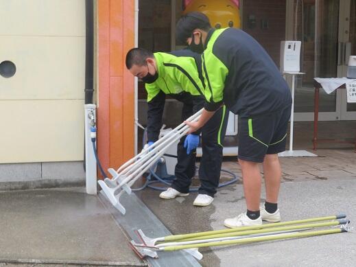 先日、強風で自転車小屋の自転車がドミノ倒しになっていました。体育の授業後に自転車を見て、1年生の男子生徒が自転車を立てに行く姿を見つけました。