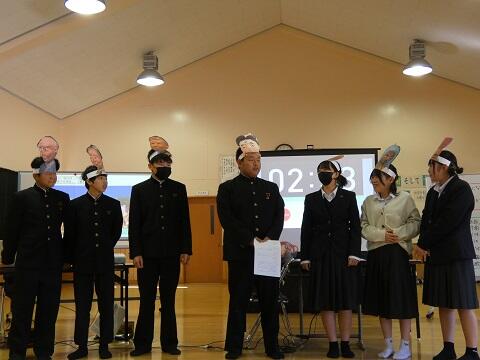 <実際に寸劇を発表します!どの班も鬼の視点を加えており、会話を通して誤解や勘違いを紐解く様子は、各班ともユニークなものでした。>
