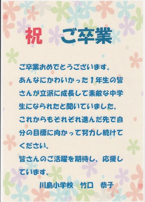 第73回北川中学校卒業式に向けて、沢山のお祝いの言葉を頂きました。
