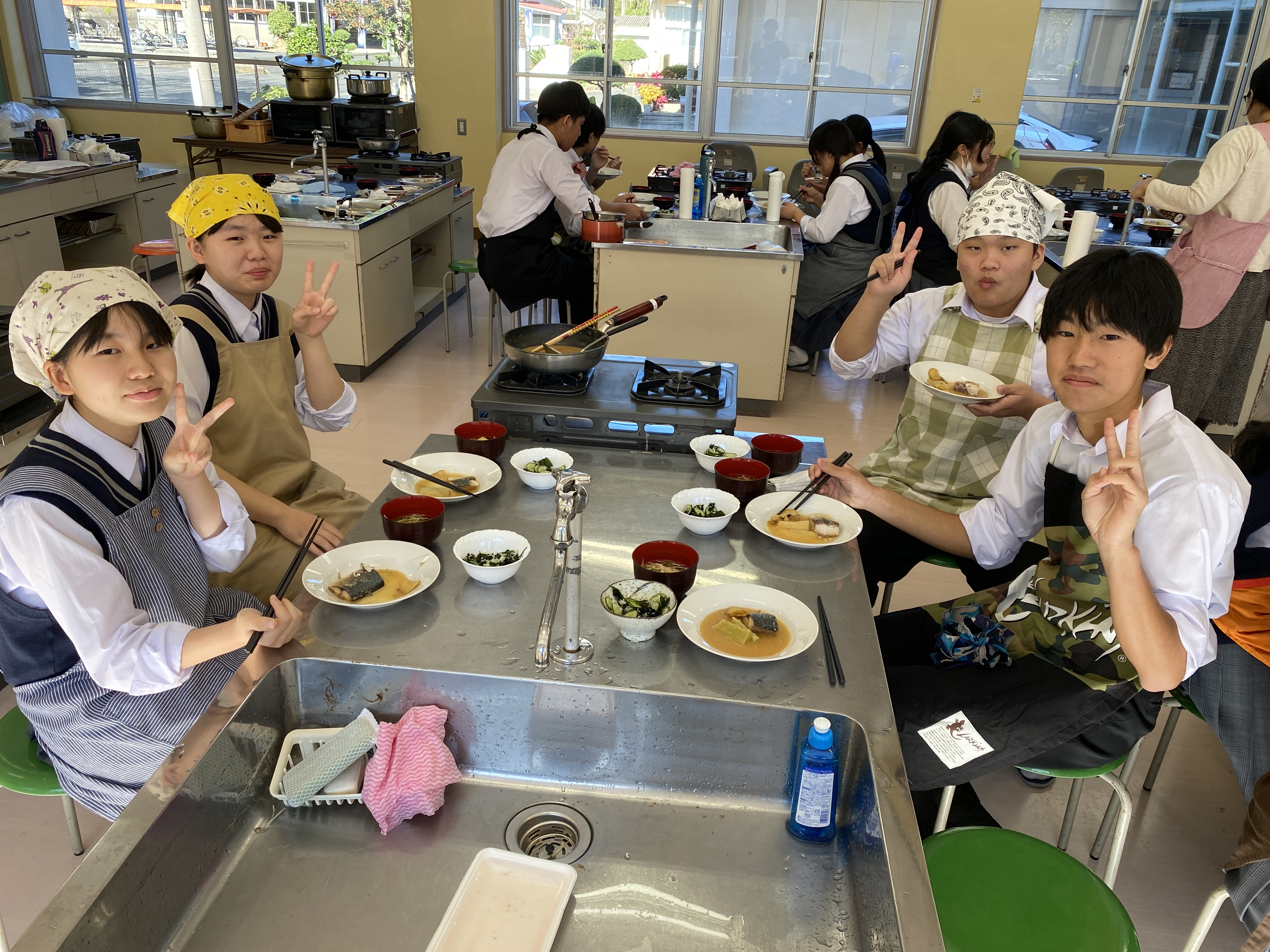 さばの味噌煮は班によって味が異なっており、各班の個性が現れたものが完成しました。