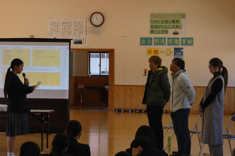 3月11日(水)、「地域の人と語る会」を開催しました 。地域で活躍されている成崎聡様、柴田竜様、妹尾麻樹様の3名を講師にお招きしました。2年生による活動報告を踏まえて「北川の魅力をどう伝えるか」といったテーマで全体話し合いを行いました 。