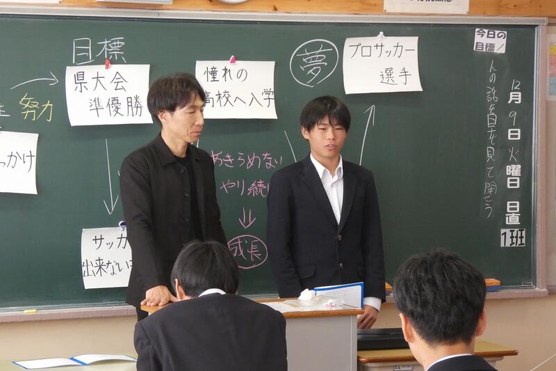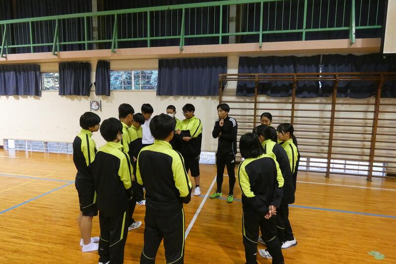 12月9日(火)に式田高義様、波戸康広様を講師としてお招きし、夢の教室を実施しました。最初は体育館でレクリエーションを通して、交流を深めました。その後波戸さんのサッカー人生を振り返りながら、夢や目標に向かって努力することの大切さや何事も勇気をもって行動する事の大切さについて講話していただきました。