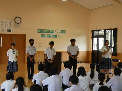 始めに、各学年の代表生徒による「1学期の反省」を作文発表しました。
