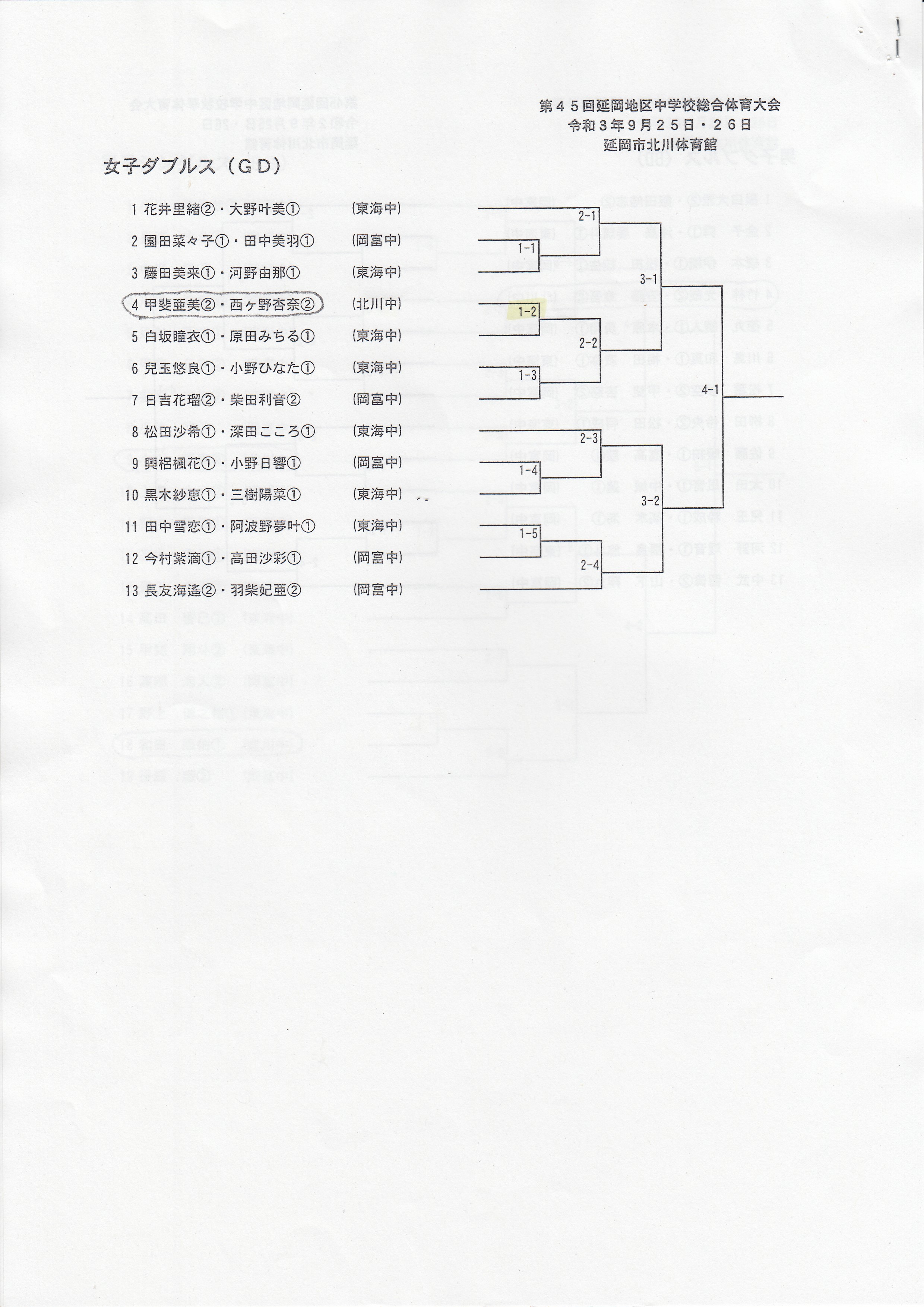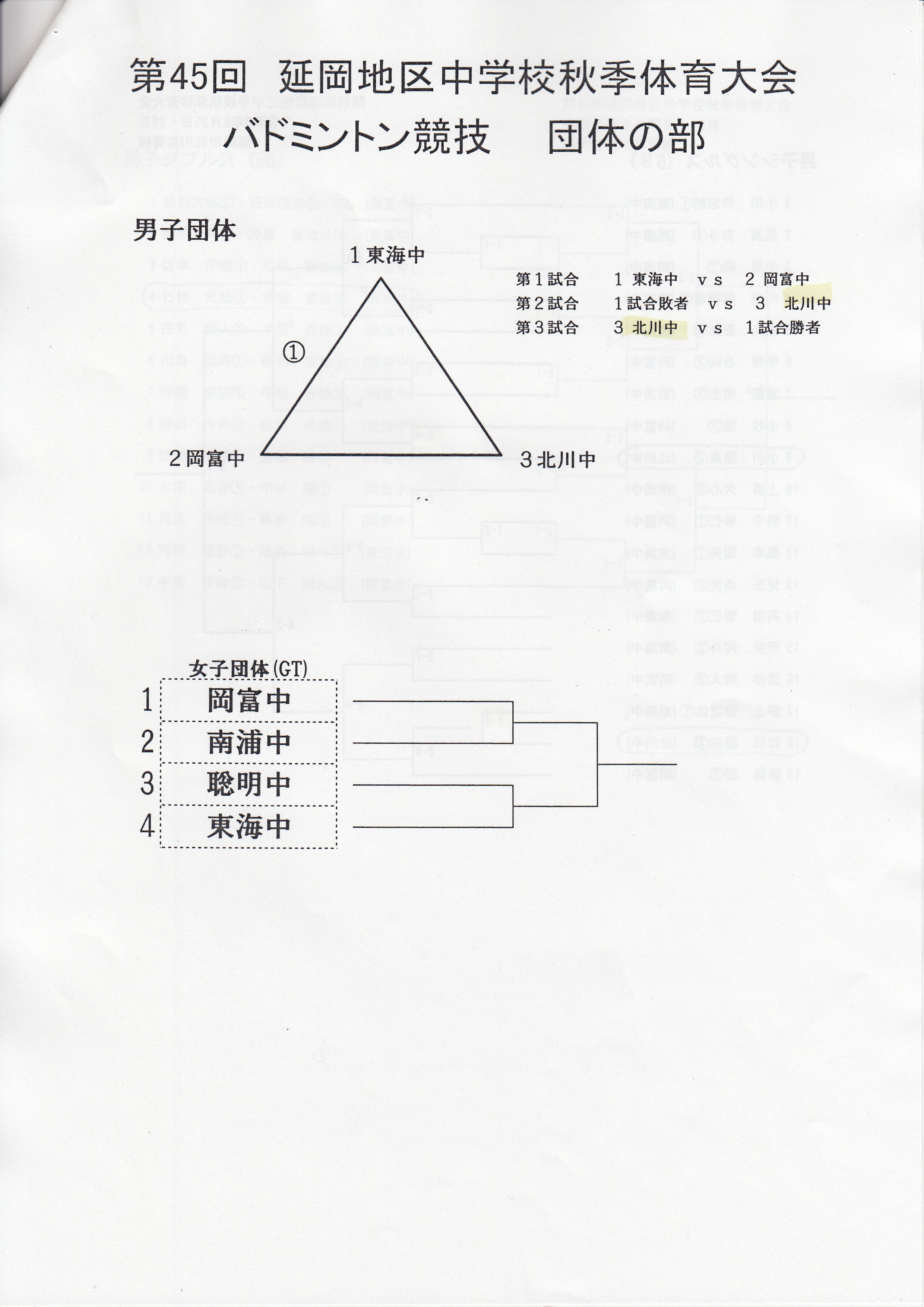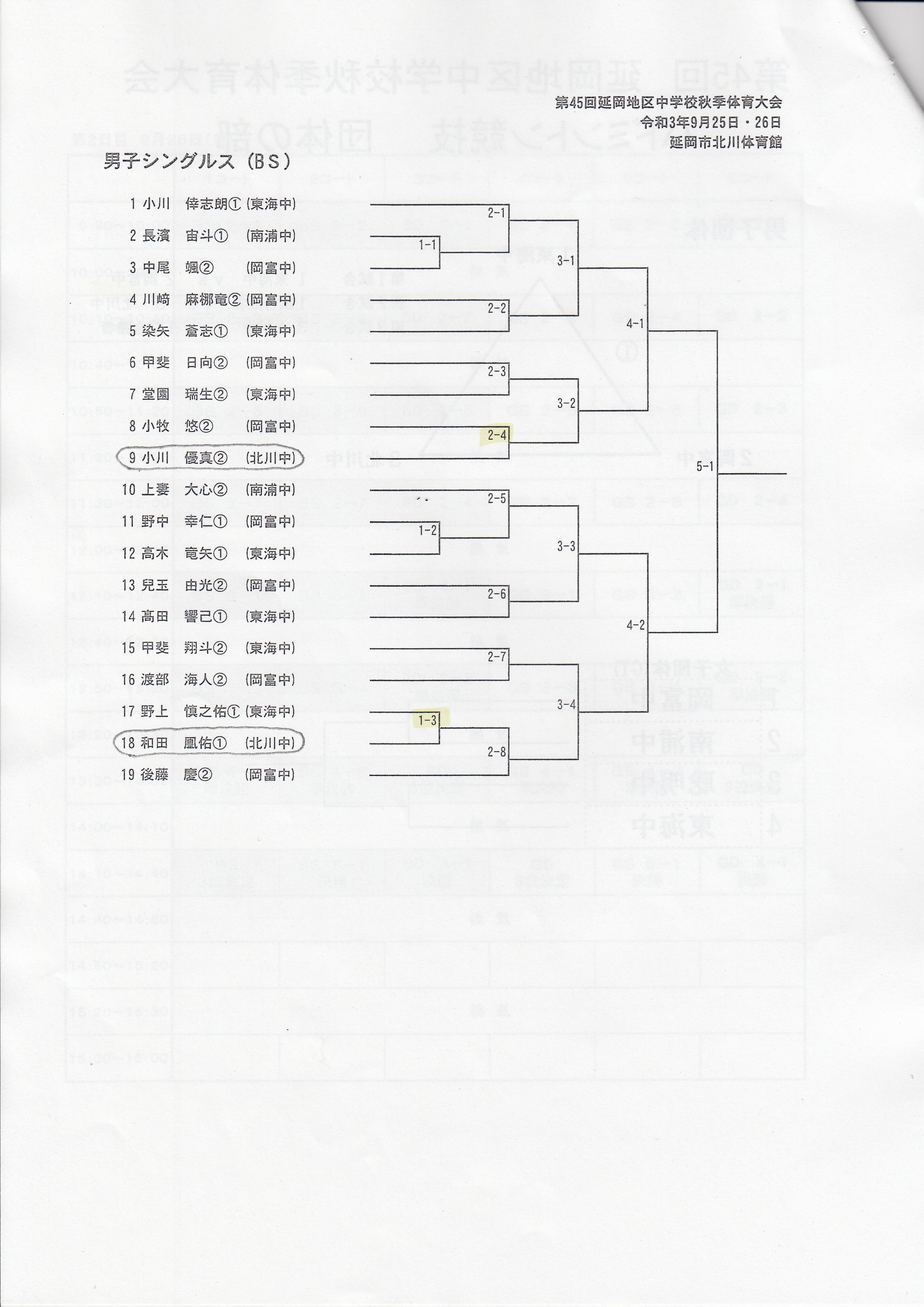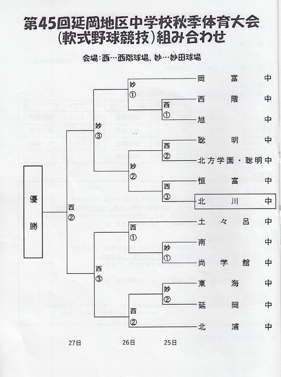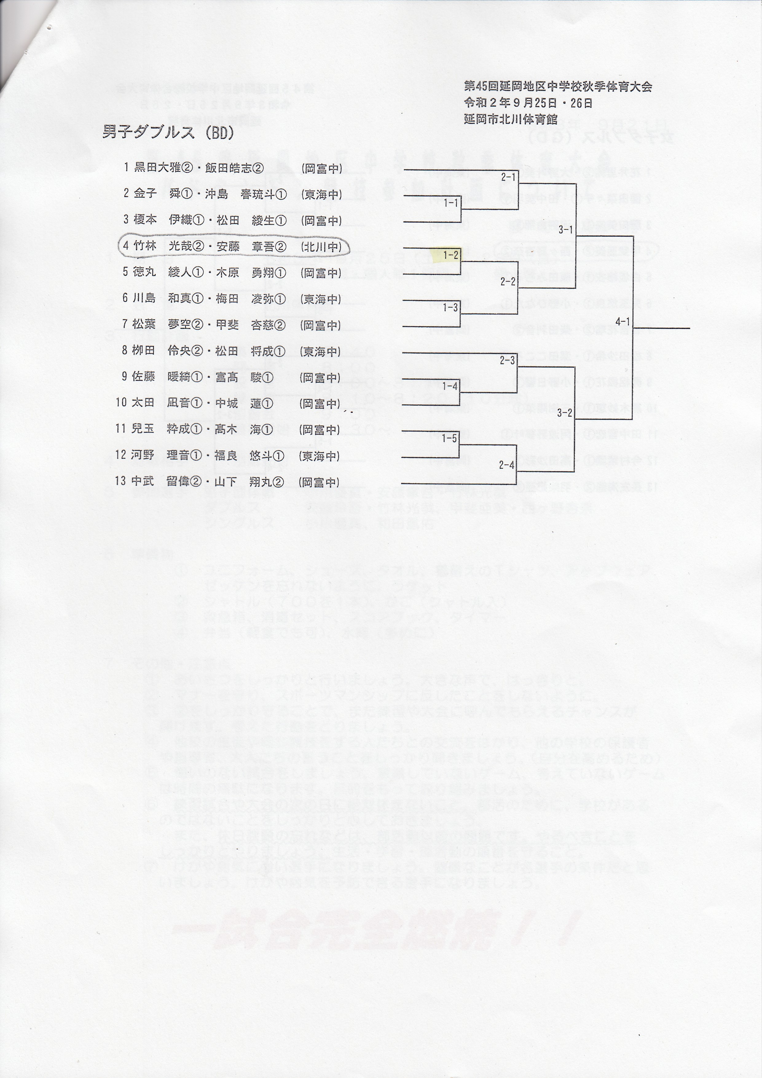 延岡地区中学校秋季体育大会(9月25日~27日)の各部活動の結果です。