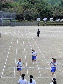 先週行われた全校体育の様子です。徒競走のゴール付近です。