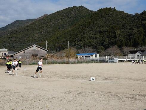 12月から体育の授業は持久走です。「12分間走」では、自分のペースで12分間運動場を走り続け、走力や持久力を身に付けます。