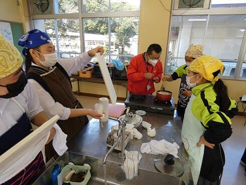 さまざまな形に野菜を切ることや、野菜が柔らかくなるまで煮込むことが難しく、少し焦げてしまった班もありましたが、みんな一生懸命に作って笑顔で食べていました