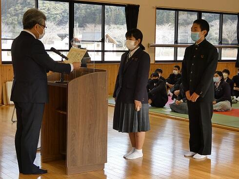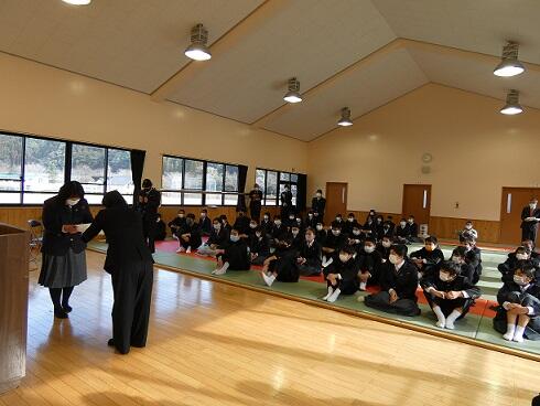 今日で第2学期の学習が終了します。まず武道場で、生徒集会・全校集会をしました。