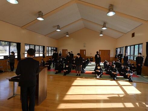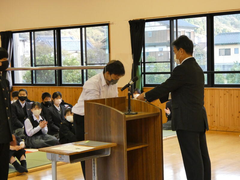 最初に、2・3年生の代表生徒が2学期の反省を述べました。