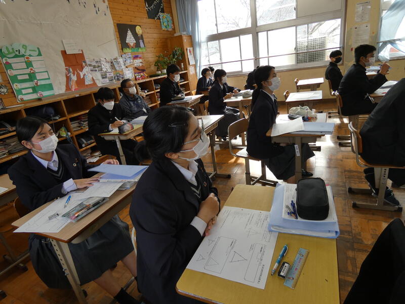 各学年の授業の様子です。1・2年生は来週のテストに向けていつもの倍以上真剣に授業に取り組んでいます。3年生も受験に向けて各教科の学習と面接の練習を頑張っています。