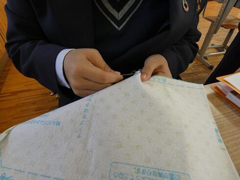 3年生は、ブックカバーを作成しています。並縫い・本返し縫い・しつけ縫いなどこれまで学習した縫い方を活かして学習へ取り組んでいます。
