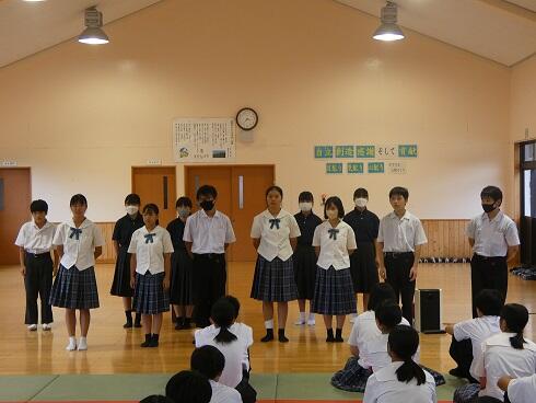 放課後に、延岡地区中学校秋季体育大会の激励式が行われました。