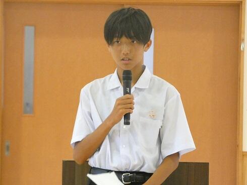 先週行われた英語暗唱弁論大会で発表した内容を全校生徒の前で発表しました。自分を含む、これからを生きる子どもたちの明るい未来について英語で感情を乗せながら話すことができました。