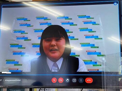10月18日に行われる生徒会役員選挙に向けて、給食の時間に立候補者の政見放送が始まりました。