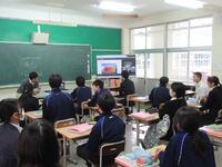 オンラインで南浦中学校と接続して、英語の合同授業を行いました。