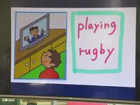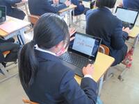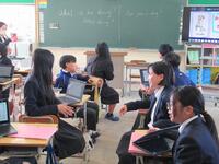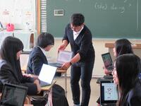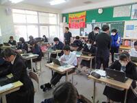 オンラインで南浦中学校と接続して、英語の合同授業を行いました。