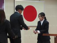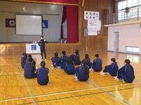 全校集会を行いました。学校生活の連絡、部活動県大会の表彰、1年生による延岡市音楽祭に向けての合唱披露、を行いました。