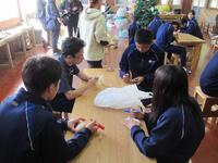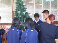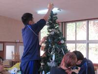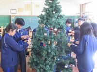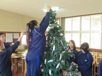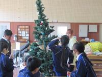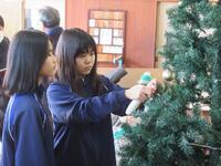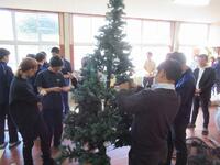 3年生が、サポートを受けて、材料を再活用したクリスマスツリーを作成しました。