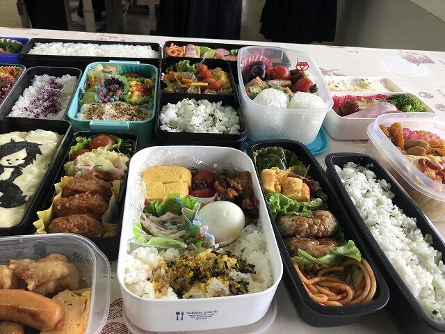 前日から準備をしたり、当日早起きして作ったりと苦労しながらも、ほとんどの生徒が弁当作りに関わることができていました。