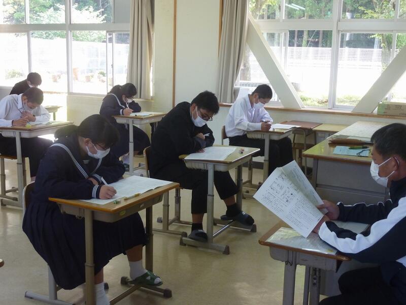 いよいよ今日から、3年生の実力テストがスタートしました。初日(5/6)は「国・理・英」、明日(5/7)は「社・数」が行われます。延岡市内だけではなく他の市と一緒に、また県内一斉という形で、今年度3回実施される予定です。中学校卒業後の進路先決定において重要な資料を得ることができる今回のテストに、3年生11名の取り組む姿は真剣そのもの。頑張れ、3年生!!