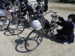自転車やヘルメットの安全点検が行われました。防犯登録や反射板の有無など、自転車に不備がないか、ご家庭でも安全点検の意識をもっていただけると有り難いです。