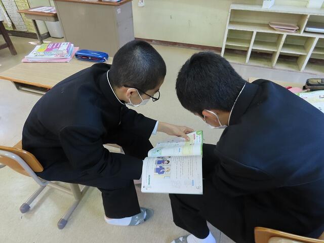 例文を確認した後にペアで比較をしました。みんな積極的にコミュニケーションをとっていました。