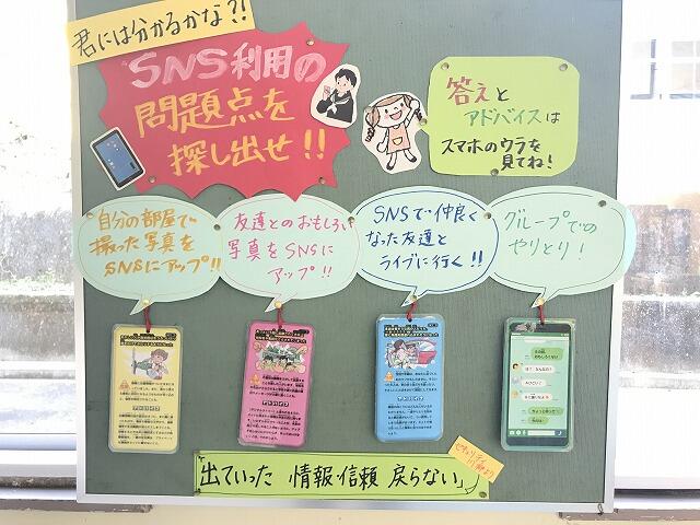 本校はスマホ・携帯所持率が高い傾向にあります。学級での指導とともに、保健室からもスマホ利用についての注意喚起を行っています。