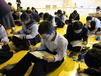 講話の中で、エゴグラムチェックをして、自分の性格の傾向を知る時間があり、生徒は楽しみながら熱心に取り組んでいました。