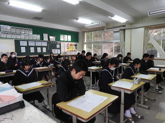 本日は、5名の民生児童委員と主任児童委員、社会福祉協議会北浦支所長を含む7人と学校職員4名で情報交換会を実施しました。まず、授業を1年生から3年生まで見学していただき、その後、北浦中学校について、来年度の教育課程や現在の生徒指導の現状について話し合いをしました。協議の中で「地域と共ににある学校」「地域の中心となる学校」を目指して、学校と地域の協力体制をより連携していくことを確認しました。