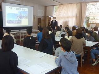 最後に、冬休みの過ごし方について生徒指導主事からの確認があり、3学期始業式(1月7日)の元気な姿での再開を約束しました。