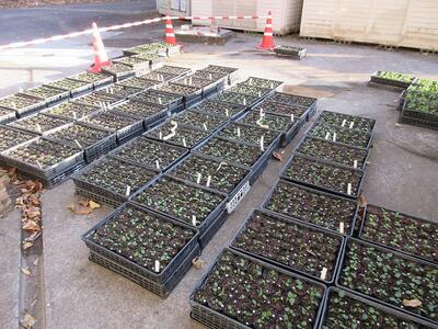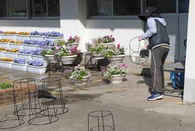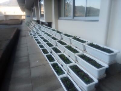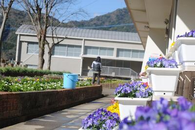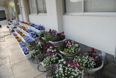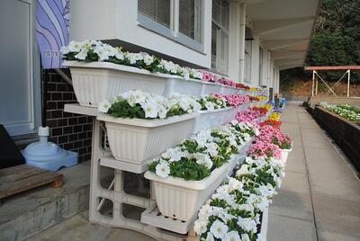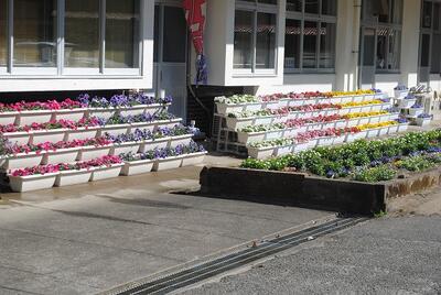 卒業式入学式で飾られる素敵なお花は、本校事務員が昨年から大切に育ててくれたものです。