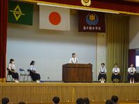 からの社会は、国境を越え、様々な国の人たちの考え方や価値観を地球規模で考えていく、グローバルな社会となります。学校はもとより、新聞やニュース等、様々な情報をもとに自分で考え、判断し、行動を決断できるよう、しっかりとした自分の意思がもてるようになってほしいと思います。今回の生徒会選挙が「有権者」としての意識をつくるきっかけになることを願っています。最後になりますが、もし、今回の選挙で残念ながら当選しなかったとしても、自から立候補をしたということ自体とてもすばらしく、立派なことです。結果にかかわらず、大きな拍手を送りたいと思います。以上です。」