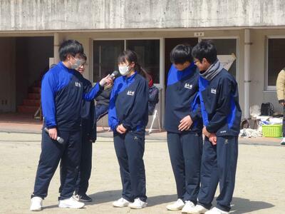 当日は雨が予想されましたが、時折曇る程度でした。ただ、気温が低く、寒かったですが、生徒にとっては思い出に残る楽しい送別行事になりました。