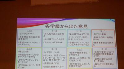 これまでの話し合いの結果、各学級から出された具体策は以下のとおりです。