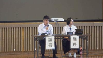 生徒会役員からの紹介で、議長・副議長が登壇し、総会がスタートしました。