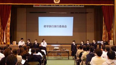 とのことです。実行委員長は「これらの3つの力が修学旅行を通して高められるように頑張りましょう」と話してくれました。