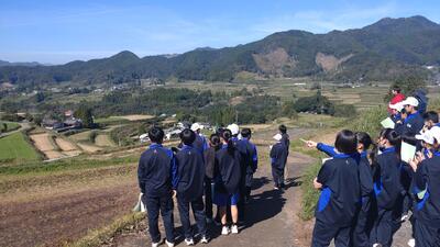本町の基幹産業の一つである農業や、それを支える山腹用水路に触れること、またそれらを生かして、観光資源にしていることを知り、町の産業に関心をもち、中学生としてできることを考えることを目的としています。