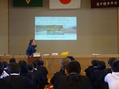12月4日(月)の5,6校時に第2学年において、「流域治水学習」を実施しました。