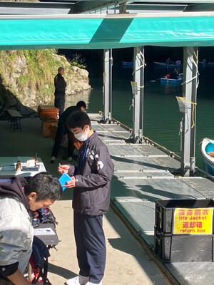 事前学習では、「一番大切なことは 班の人全員が安全に活動して無事に帰ってくることです!」と指導しています。
