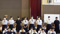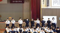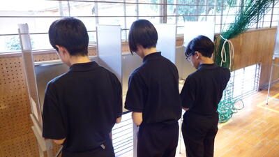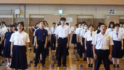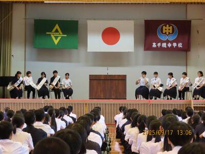 学校生活では、校則の見直しが進み、靴の変更やセーター、ベストだけでの活動が許可されました。来年度には、夏服や通学カバンの変更が可能になります。校則に沿った身なりかを自分で考え、高千穂中生としての自覚をもち、生活しましょう。