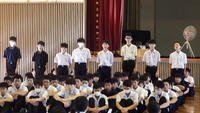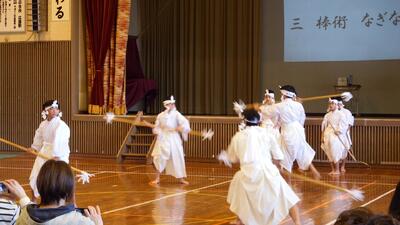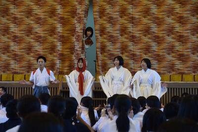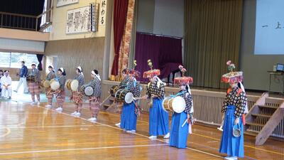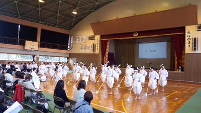 10月31日(金)に1年生による伝統芸能発表会を開催しました。昨年度までは紅葉祭で行っていましたが、地域の方も含め多くの方に見ていただくために別枠で設定しました。第1学年では、この地域の誇りである伝統芸能(「臼太鼓踊り」、「民謡」、「棒術」、「なぎなた」、「神楽舞」)について、地域の方々からご指導いただき、その学習を行ってきました。上野中学校との統合により、今年度より上野地区の臼太鼓踊りが加えられました。短い練習時間の中で、十分でないところはあったかもしれませんが、生徒たちは一生懸命練習して披露しました。今回の経験が、これからの高千穂を愛する気持ちや伝統を継承するきっかけになってくれたらと思っています。ご指導いただいた講師の皆様、お忙しいところ何度も学校にお越しいただき、ありがとうございました。