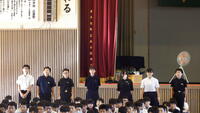先程、各学年代表のみなさんが3学期の抱負を発表してくれました。1年生の吉永理乃さんは、「自ら考えて判断し動くという主体性を身に付けること」を新たな心構えとして、2年生の佐藤琉圭さんは、「立志式に向けて、自分の気持ちを表現できる学年にしていきたい」と、また、3年生の佐藤璃空さんは「2学期に決断した志望校に絶対合格する」という決意を、そして、生徒会の壷田つくしさんは「3学期は自分を磨き、夢や希望をもって生きていくための力を身に付ける期間である」と発表してくれました。自分のため、人のためとそれぞれの想いはあると思いますが、どうか今年も人のために役立つ一人の人間として家族や仲間、学校のために力を尽くしてください。そして多くの人と結んだ信頼関係のもとで、幸せを実感できる年にしてください。