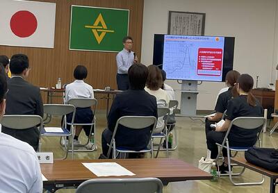 11月9日(日)に延岡市役所で開催された模擬流域治水協議会に3年生7名が参加しました。夏休みや休日に流域治水に関する様々な体験活動をし、総合的な学習の時間にさらに調べたりまとめたりして、その取組を発表する場でした。東京大学や宮崎大学の先生をはじめ、多くの大人の前で堂々と発表しました。後半は、流域治水に関するロールプレイを、自然保護団体の人、川の上流の農家の人などになって、それぞれの立場での考えや協力してより良くするためにどうすればよいかを実演しました。