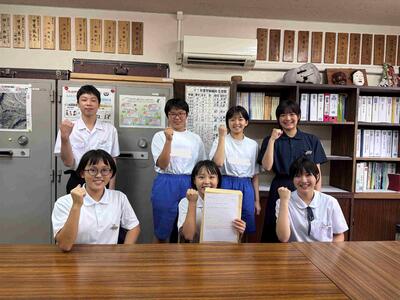 宮崎県北方領土に関する作文コンクールにおいて、3年生の藤野由依さんが最優秀賞を受賞しました。また、8月に開催された「世界青少年『志』プレゼンテーション大会」にて、3年生の佐藤樹規さんが応募者3,794名の中から12名のファイナリストに選ばれ、11月30日に京都で開催される全国大会に出場することになりました。
