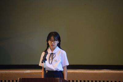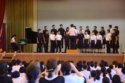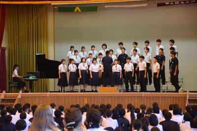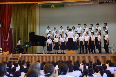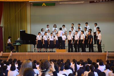 10月10日(金)に本校体育館にて紅葉祭を実施しました。今まで授業や部活動などでがんばってきた成果を発表する場として、ステージ発表では、英語暗唱弁論、国語弁論、合唱コンクール、各学年発表、吹奏楽演奏が行われました。
